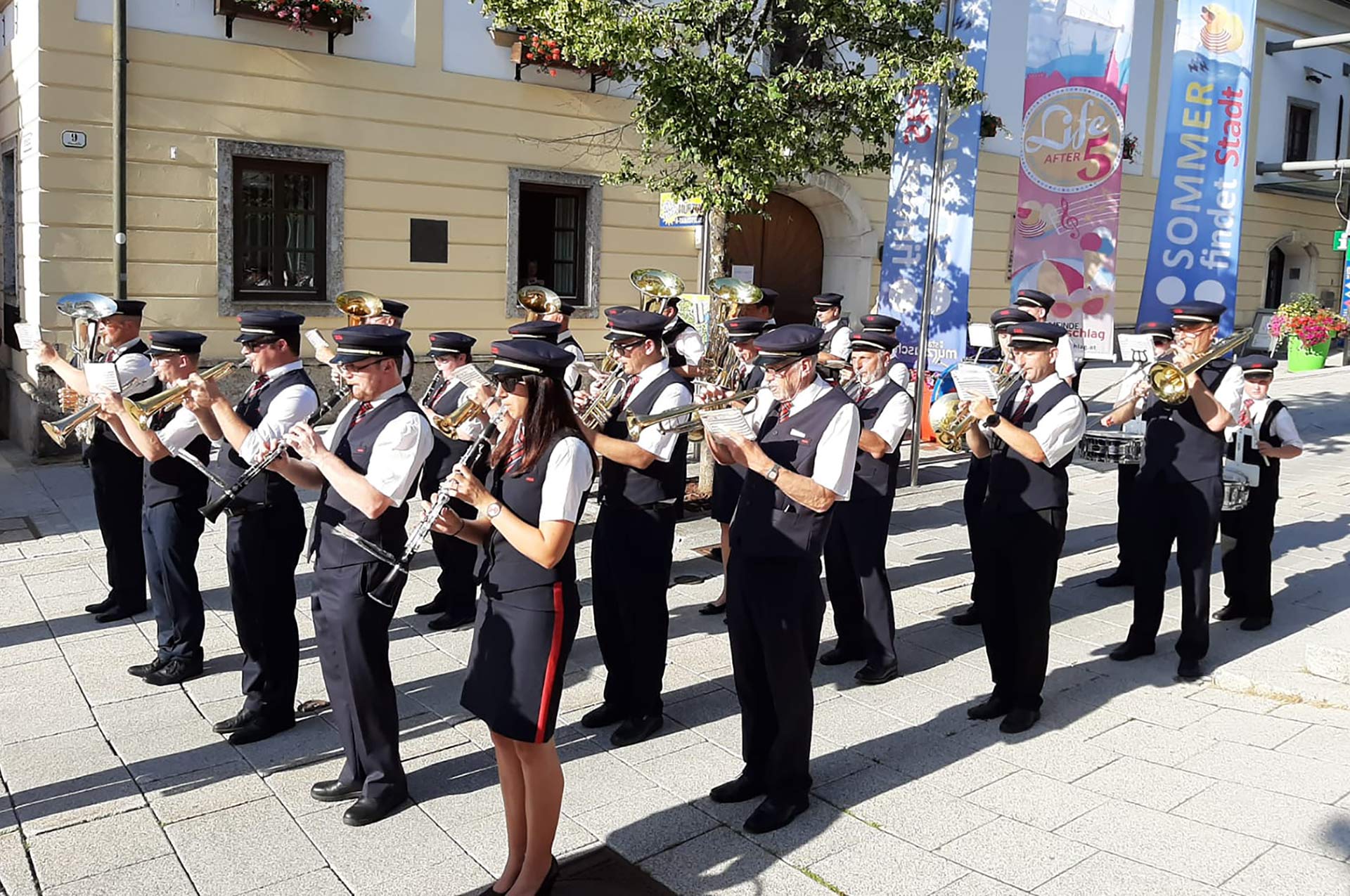 An jedem Freitag, im Juli und August 2021 nach 17.00, gibt es im Zentrum von Mürzzuschlag von den regionalen Blasmusikvereinen wieder Platzkonzerte ...
